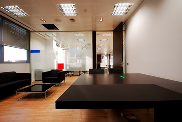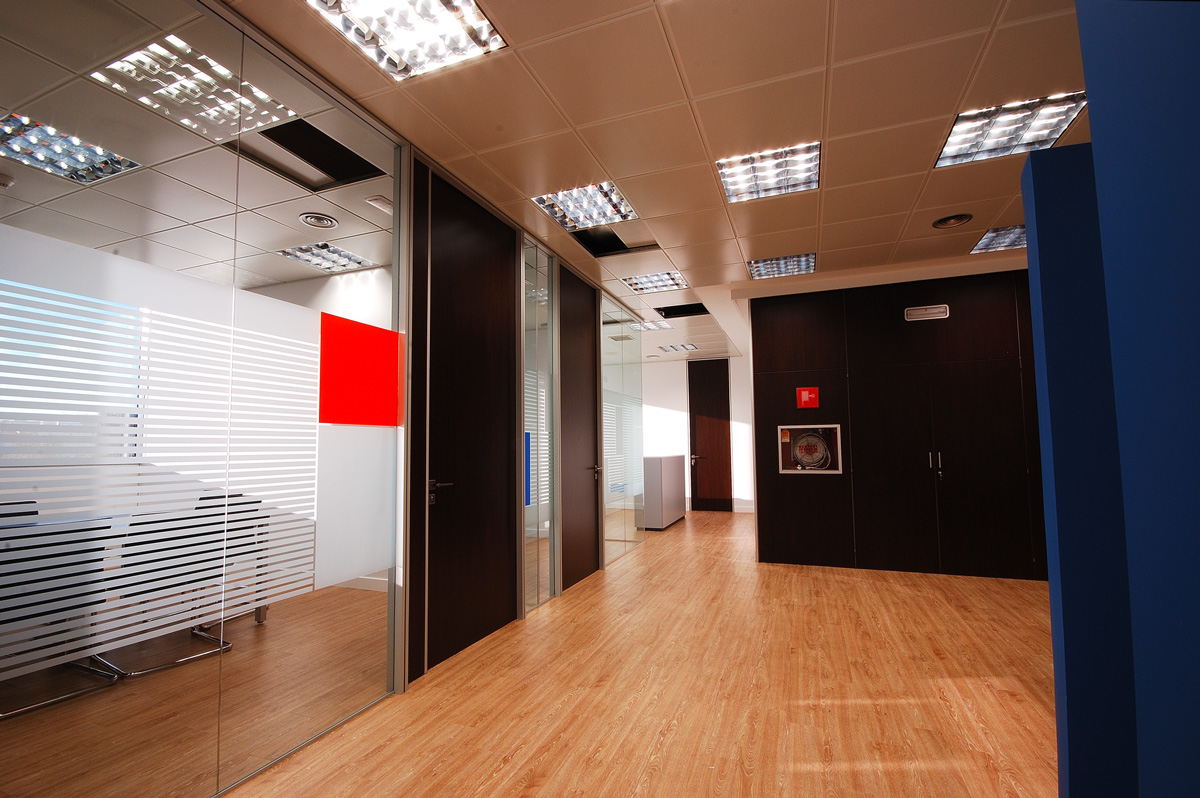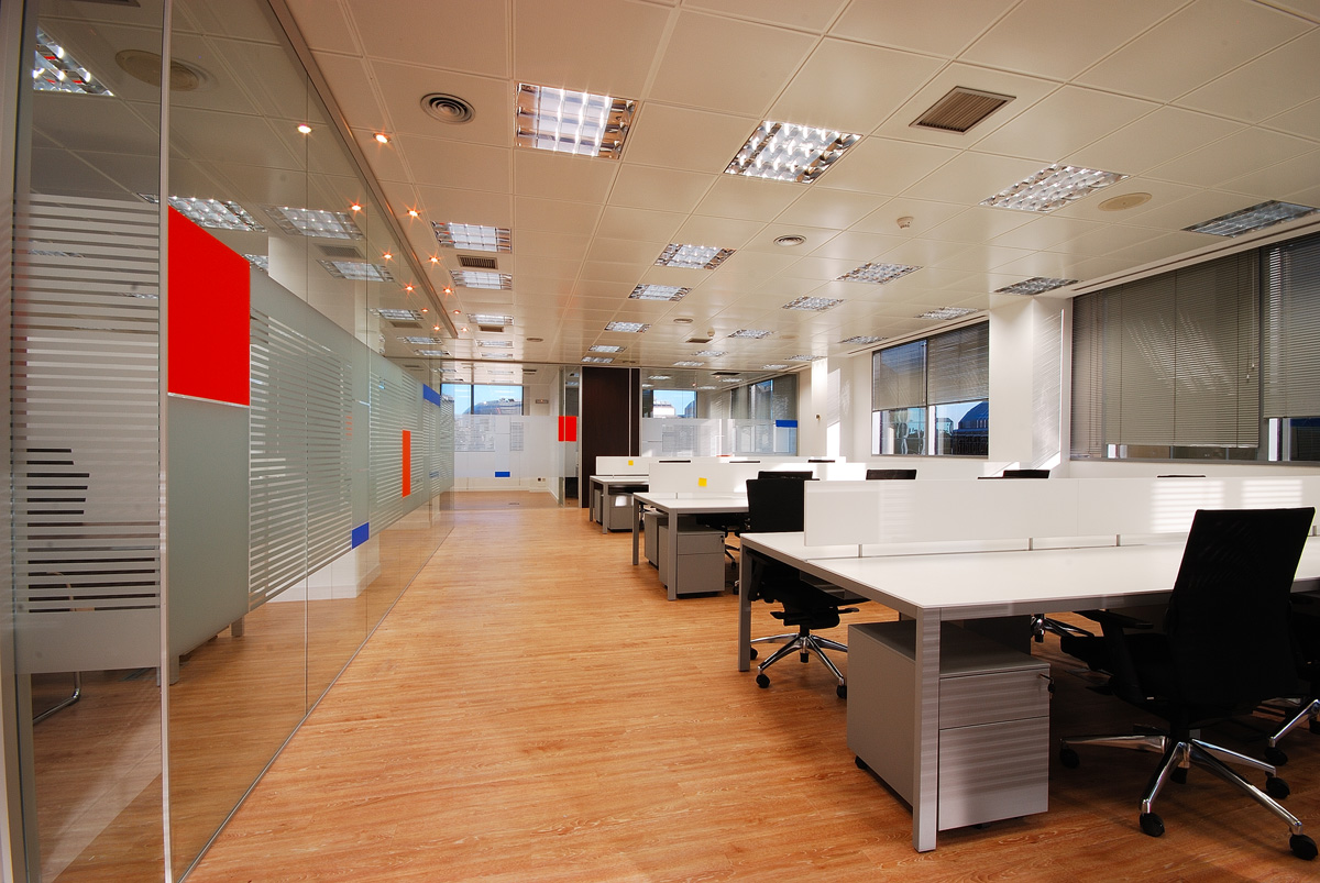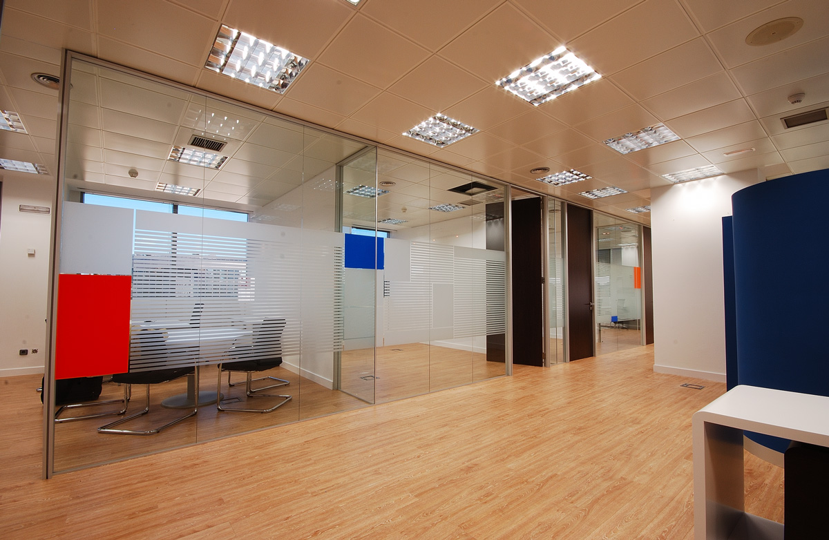Obra realizada en el 2009 en el Edificio América II. Empresa internacional de Consultoría y Espacios Informáticos con presencia en España, Argentina, México, Colombia , Chile, Perú y Brasil. La división de sus oficinas en la sede de Madrid está compuesta por mampara de vidrio continuo St-100 y puerta ciegas simples y dobles St-400 con acabado Wengue. La combinación de colores hacen el espacio más agradable, creando un buen confort en todo su entorno.